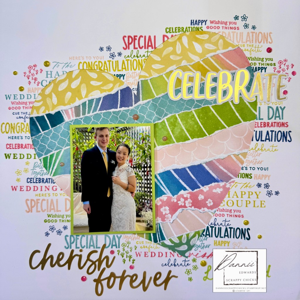 I’m in love with the February Stampin’ Up! Product of the Month! It is a fanastical Designer Series Paper Pack – “Painted Illusions 12 x 12 DSP”. So it was perfect for this wedding layout that I’ve created as part of our Product Of The Month (POM) blog hop.