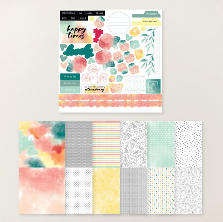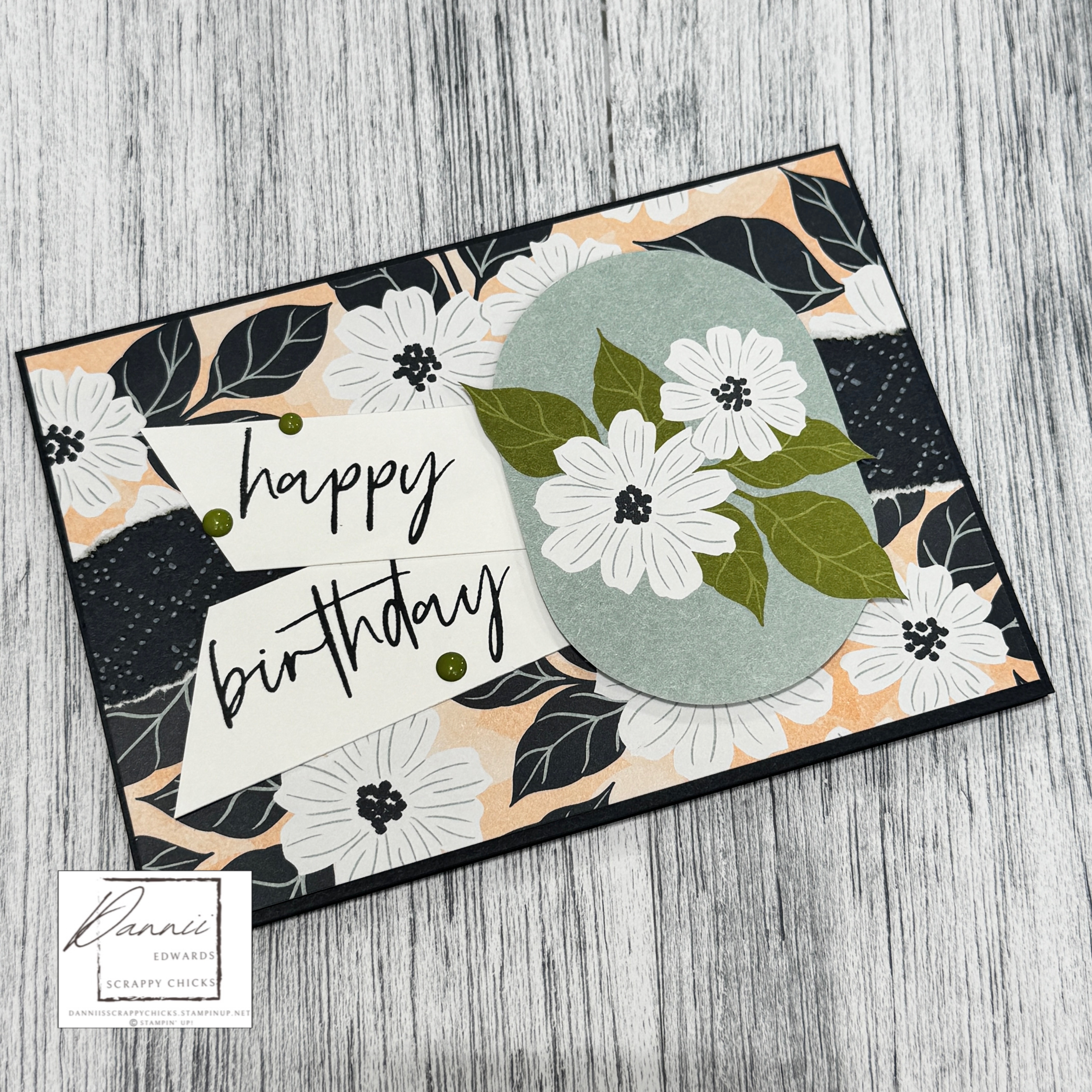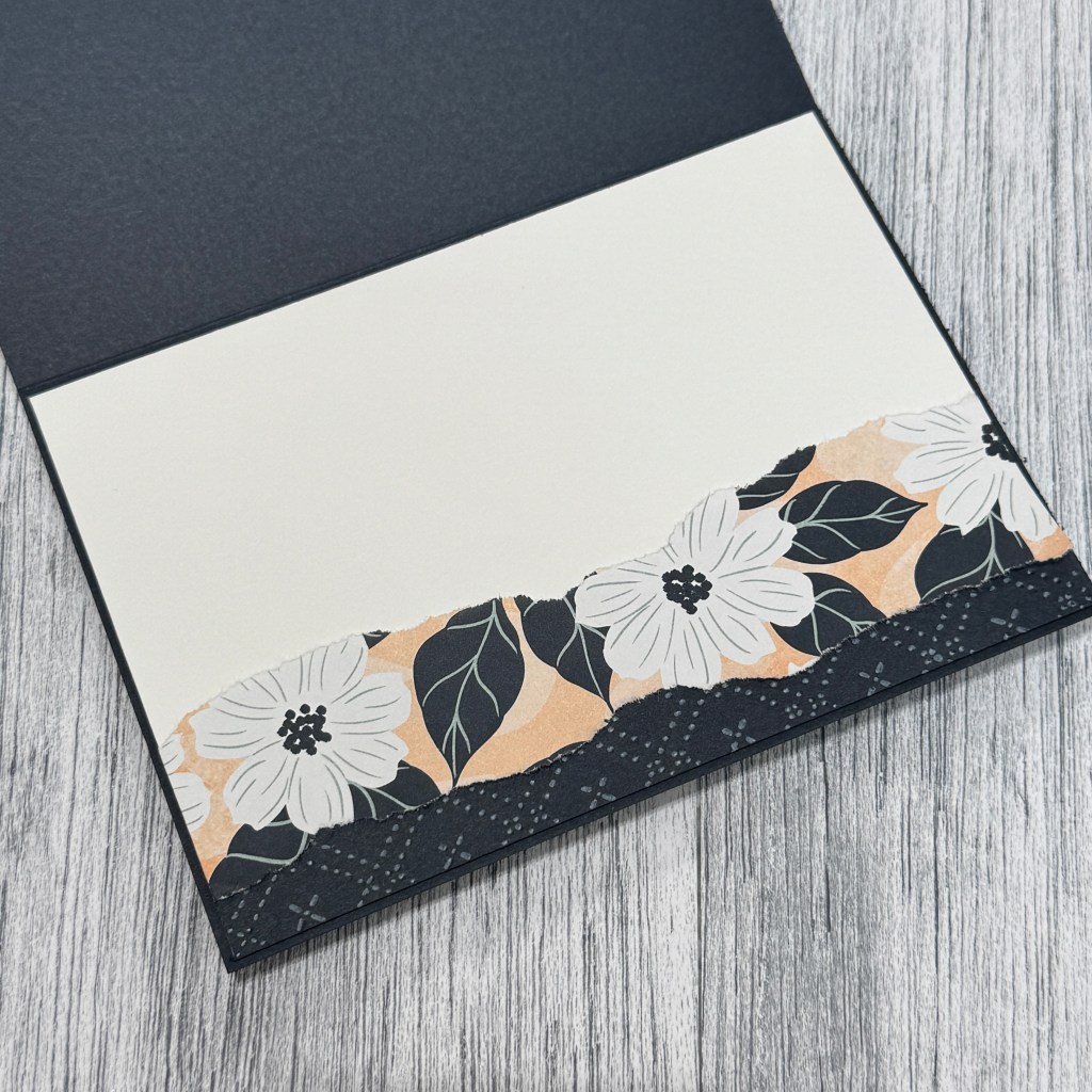 This card is so easy and yet packs a punch. I’ve simply torn the edges of some of the pieces before sticking them down and adding embellishments. Using my fav paper pack at the time – “Lovely Blossoms” Designers Series Paper (#167168), with the flower fussy cut from the cut a part page.