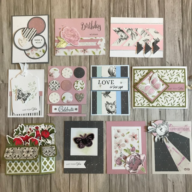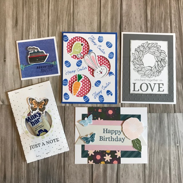 Our CTMH Convention is open to all consultants regardless of their level in the business and it’s a great chance to share ideas, participate in business and personal training and of course creative training. It’s a chance to see consultants from Australia and New Zealand and swap ideas. The team that I am in did some designated them card front swaps. With the aim of these being that we can bring them home and use them during April in our businesses. Then on top of that I had a stash of cards to swap with other consultants that I met over the weekend. I’ve labeled these random.