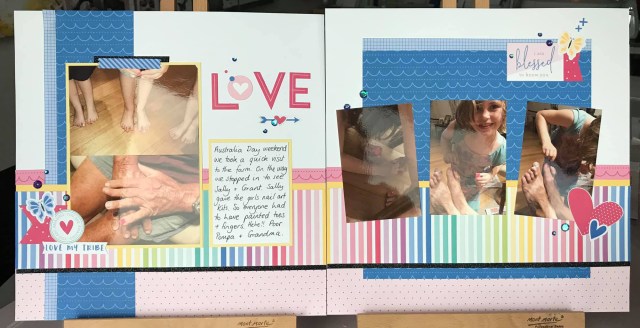 I have another Workshop Your Way extension for you all to see. So I’ve taken the original “I Heart Us” WYW, slightly altered backing papers to save lots of the lovely pattern for extra layouts and then created extra layouts of my own.
