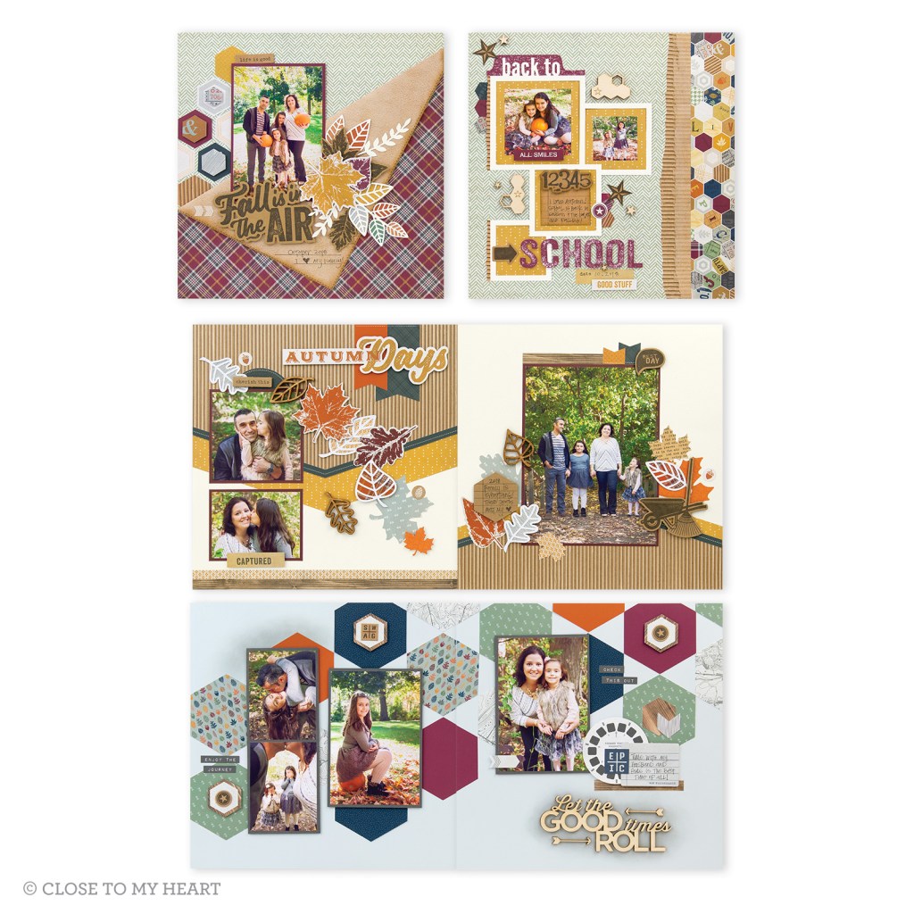 Layout 4: The below layout again uses those Thin Cut leaves, Stitch Circle Thin Cuts and Cricut cut title. Plus the Sunflower Sympathy stamp set.