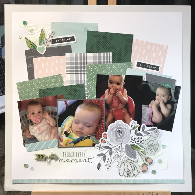 Don’t forget that using up the scraps is still a great thing to do. This layout combines scraps from four different paper packets.