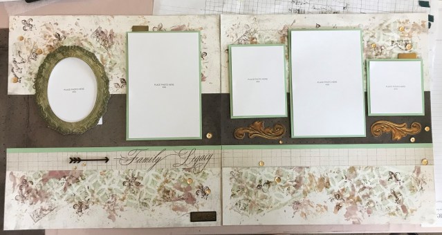 Here is another version of basically the same layout, but with my fast becoming favourite mixed media style. Same papers, with the matching inks used to distress the background – in a similar style to my layout shared in a post last month.