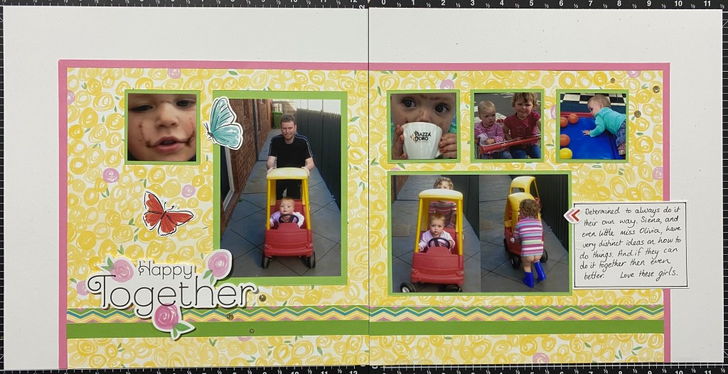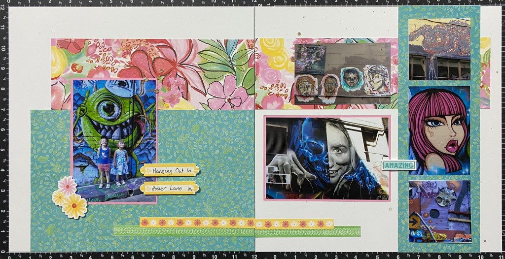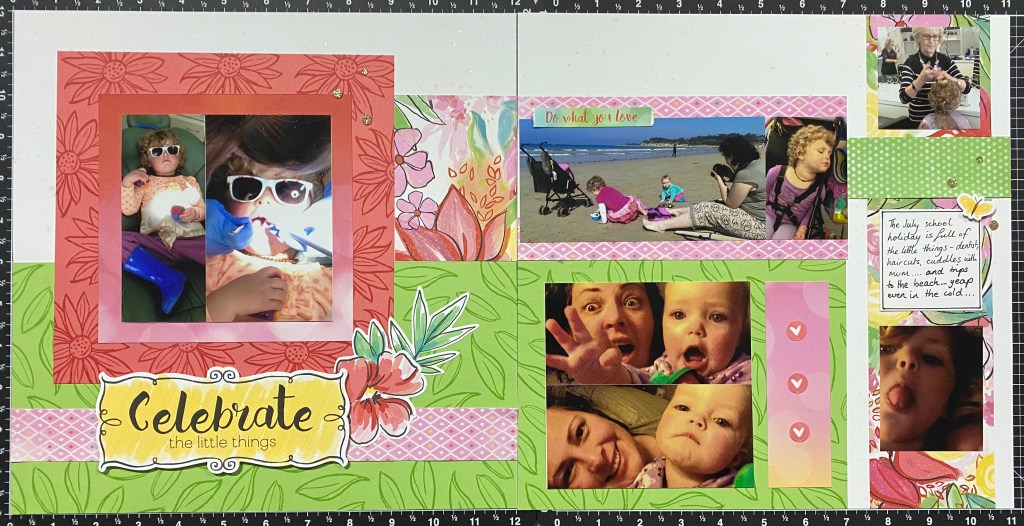 I loved this paper pack the first time it came out a few years ago. And the new version (with updated colours to match our current colour range) has not disappointed. I’ve set about developing a workshop for my customers using these papers, the sticker sheet and the matching stamp sets. My workshop (being offered next month – you can check out my FB page event for more details) features 8 double layouts (and two bonus single layouts) that I made using one Brushed Paper Packet with sticker sheet, the matching coloured cardstock, some white daisy cardstock and the stamps sets. Here is a sneak peak at four of the layouts.