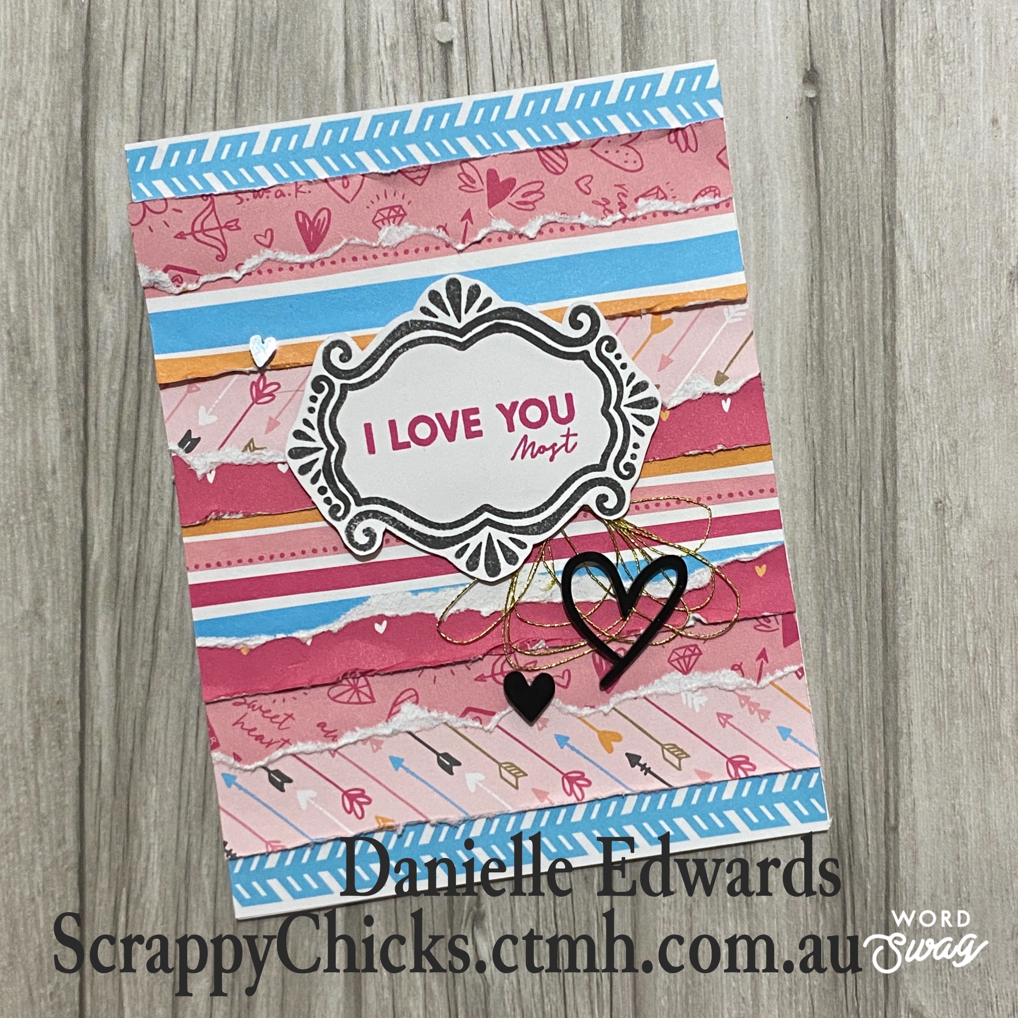Today I would like to share with you a creation which features Close To My Heart’s February Stamp of the Month – Here’s the Story (S2202). At first glance this stamp is very Memory Keeping Orientated. But I wanted to do something different. I love the brackets, and that “I love you most” sentiment. And the current Smitten paper pack (CC12217) begged to be added to that sentiment.
