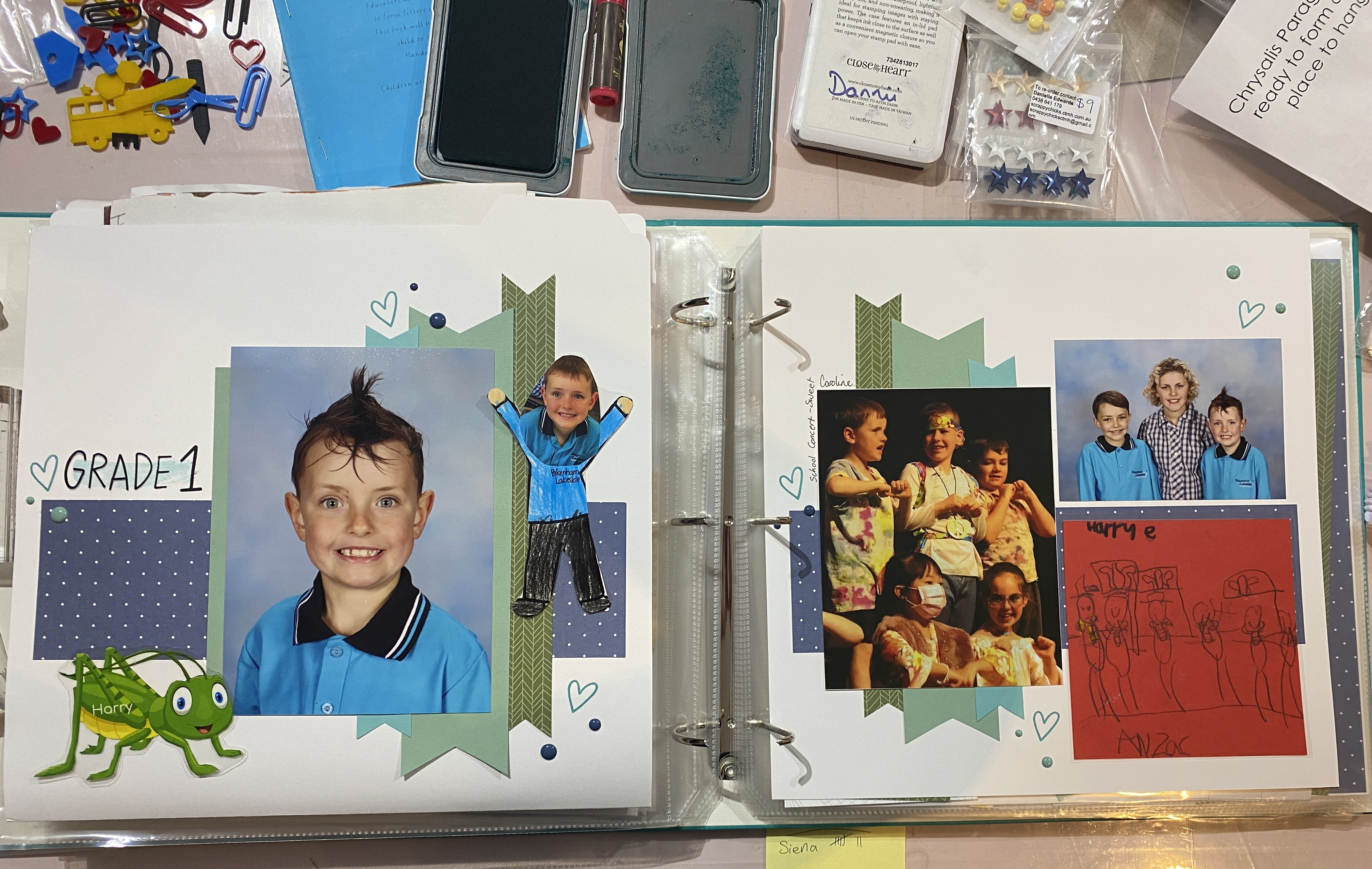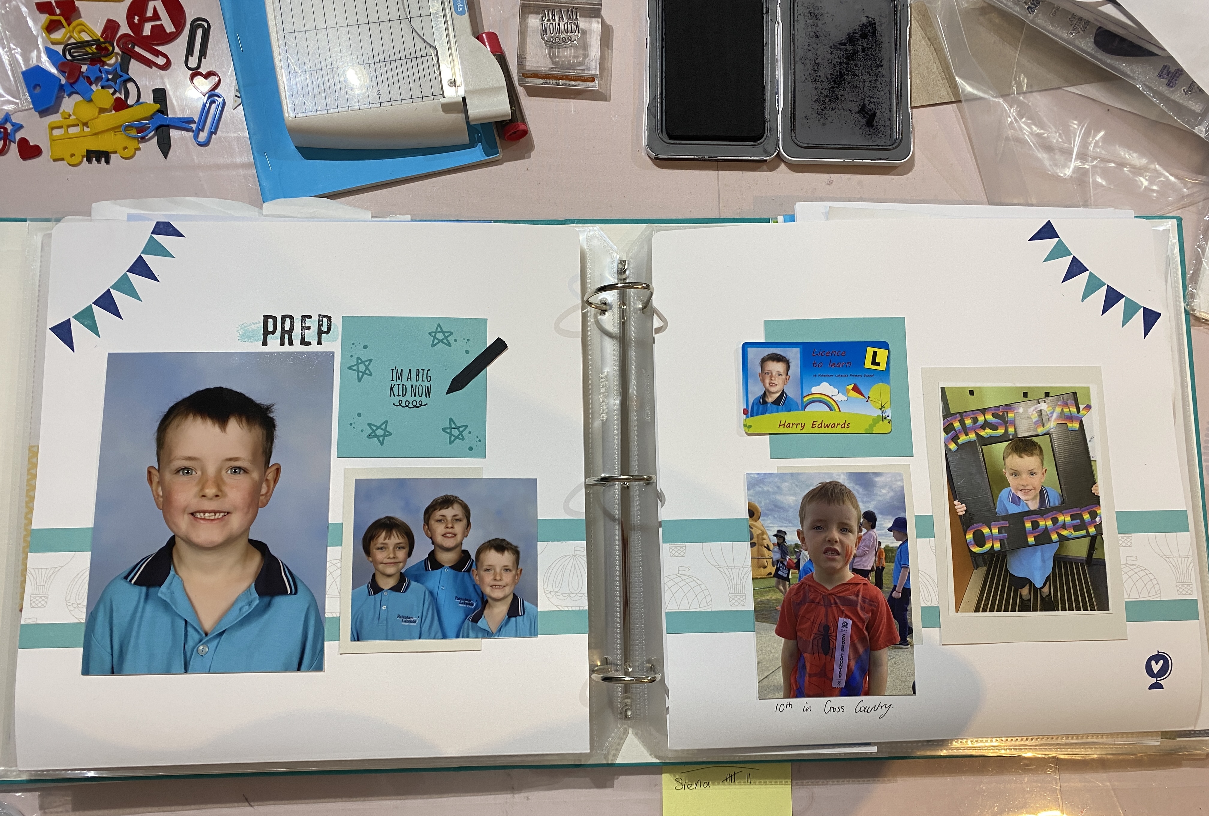 And I’ve been busy – already I’ve made 4 layouts. I’m starting with the easy things – updating the kids school albums. These are already planned and in most cases the base pages are put together – or at least cut. And going forward I’ve got a heap of layouts made that I need to put photos on, I think there are like 100 or so of those. All those beautiful layouts I’ve made as samples for classes etc and just didn’t put photos on them yet.