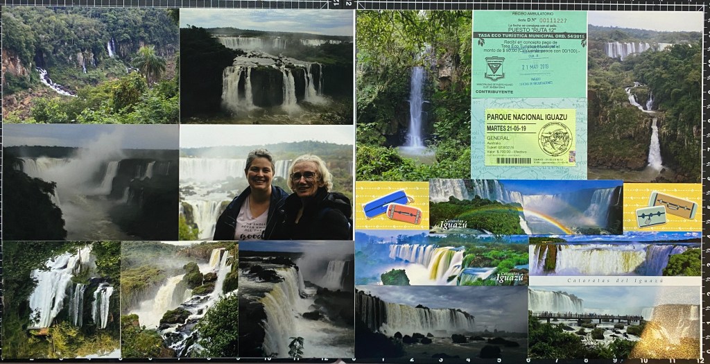 Layouts 19 & 20 was a continuation of my photos from Iguazu Falls – I was trying to fit as many photos as possible to the page. So I trimmed photos down as much as I could and tried to fill the space on the page.