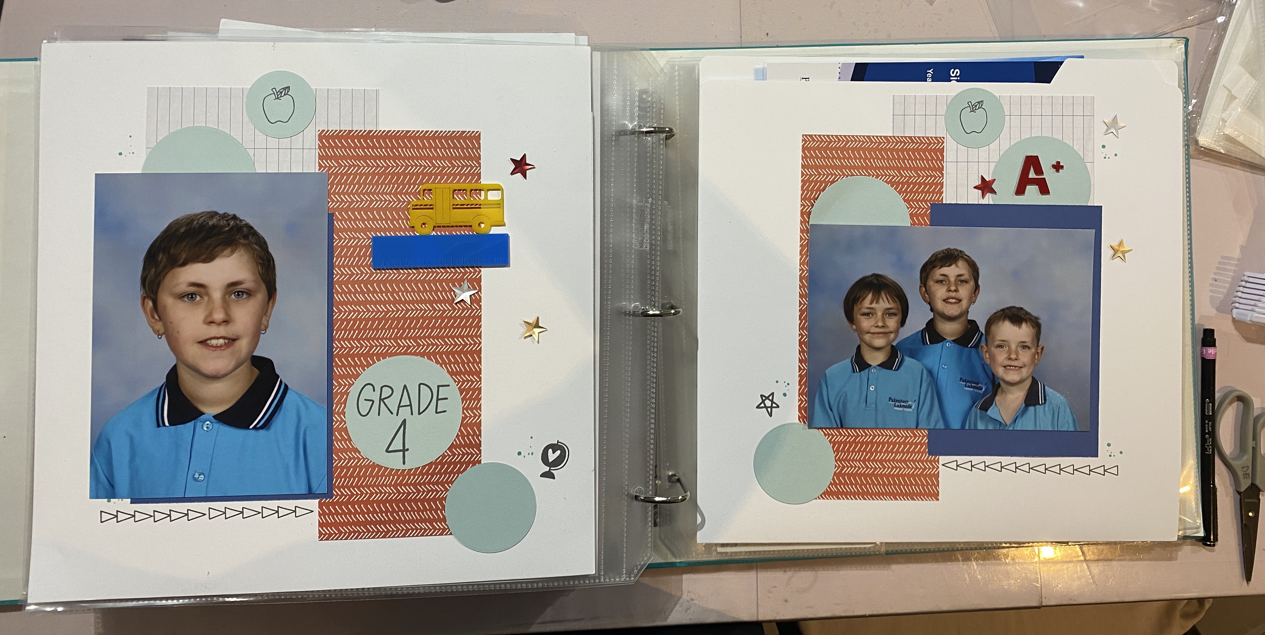 So I’ve already shared layouts 1-4 of Harry’s school album. And also layouts 9-18 I shared earlier this week in the Are We There Yet post.
