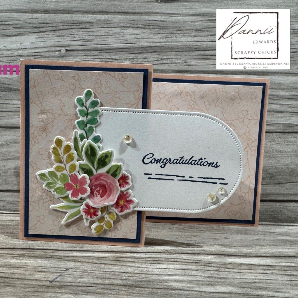 This card is a Z fold card, with the top of the Z being the card front folded in half back on itself. I’ve used the Arches Dies to create the front sentiment spot, which has been mirror on the inside. When the card is closed you can see the inside arch which was used as the spot to write on the inside. The papers are from the Kintsugi Inspirations Designer Series Papers, whilst the flowers are from the Extaordinary Flora Washi Tape. I love this washi tape. It has matching dies and stamps, so you can die cut it out to use like I have, you can even stamp VersaMark Ink on it to emboss the outlines of the flowers and leaves. So much fun. To check out all the products that I used on this card go here.