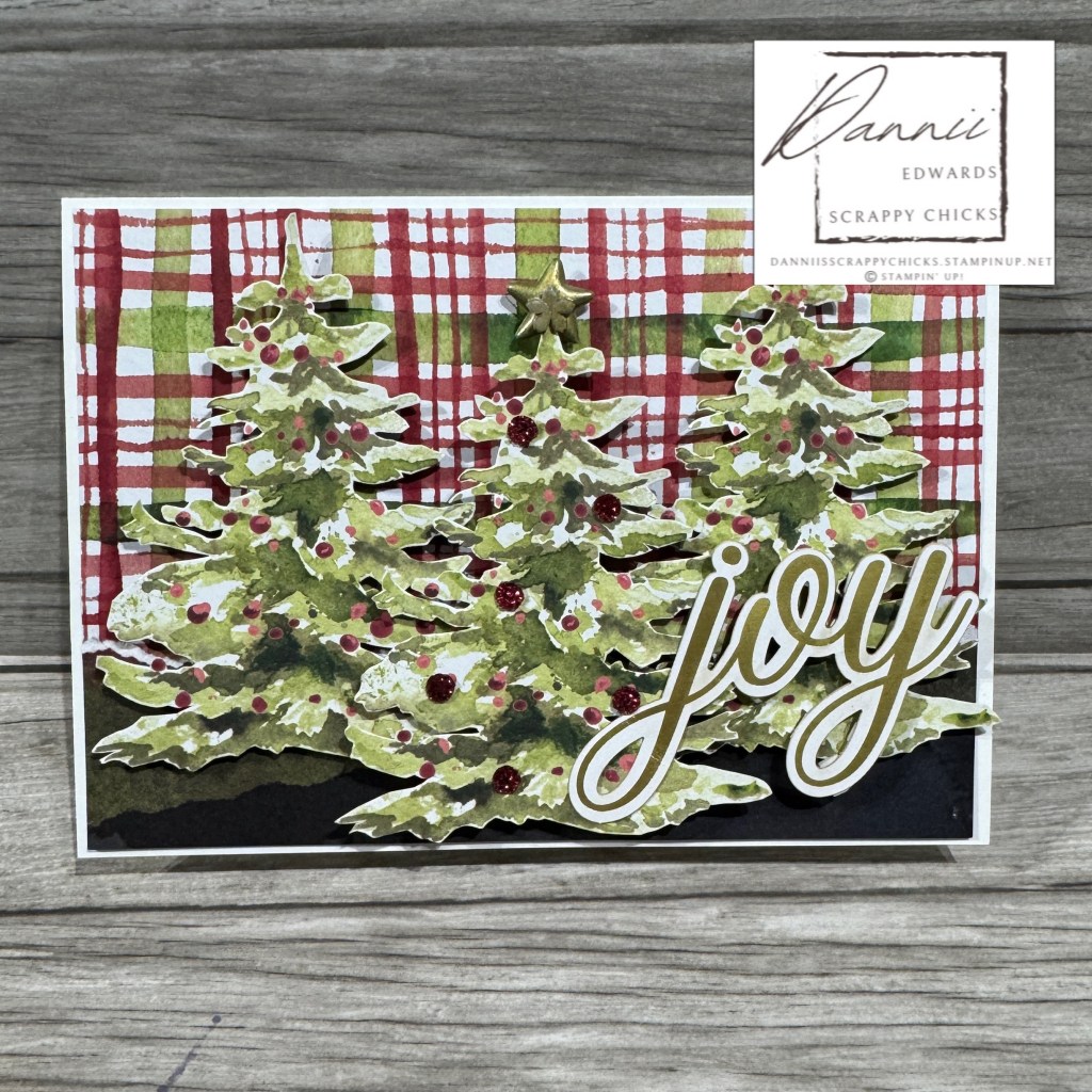 This is another fun card made with the Joyful Days Memories & More Cards and some Traditional Sparkling Sequins. Both of these products are in the Last Chance section on the website. The trees are fussy cut from some of the 3×4 cards and the torn background is a 6×4 card. Plus an emphemera title. You can get more info here.