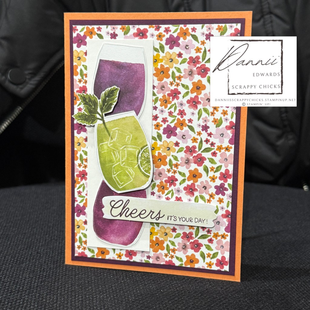 To make my card I used the Celebratory Sips Designer Series Papers. With the cups coming from one of the patterns. It is such a fun paper pack. And the ‘Cheers and Sips’ stamps (also matching dies too) really go well with this. Such a fun simple design that you could use over and over again.