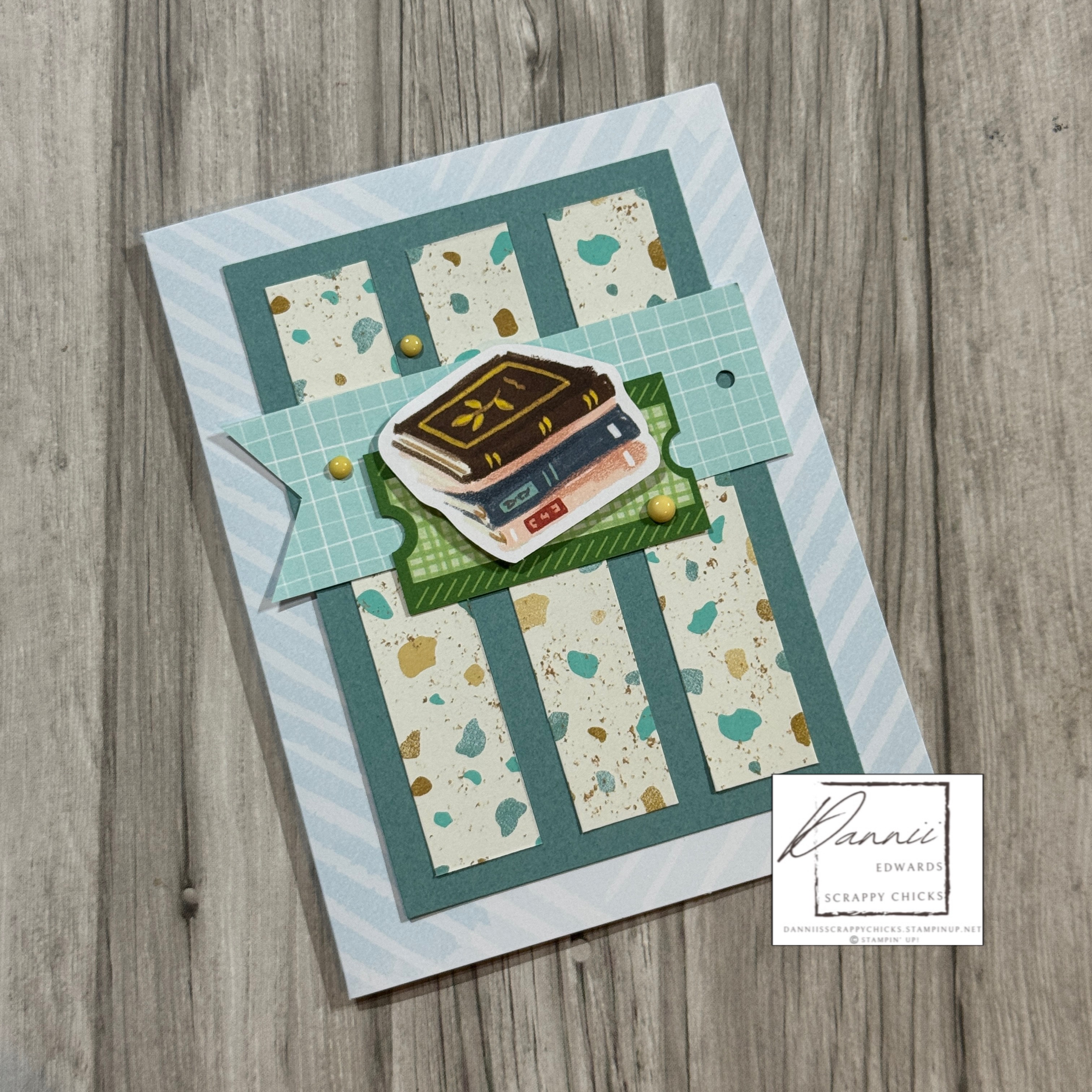 I made my version of the card using Hobby Haven Specialty Designer Series Paper (#167201) – if you like it be sure to grab it quick as it’s in Last Chance. I loved this pack because it has a couple of sheets of die cut pieces. So I used these as a feature on the card. The card base itself is from a retired patterned Card and Envelope Pack. And the bling was from my stash.