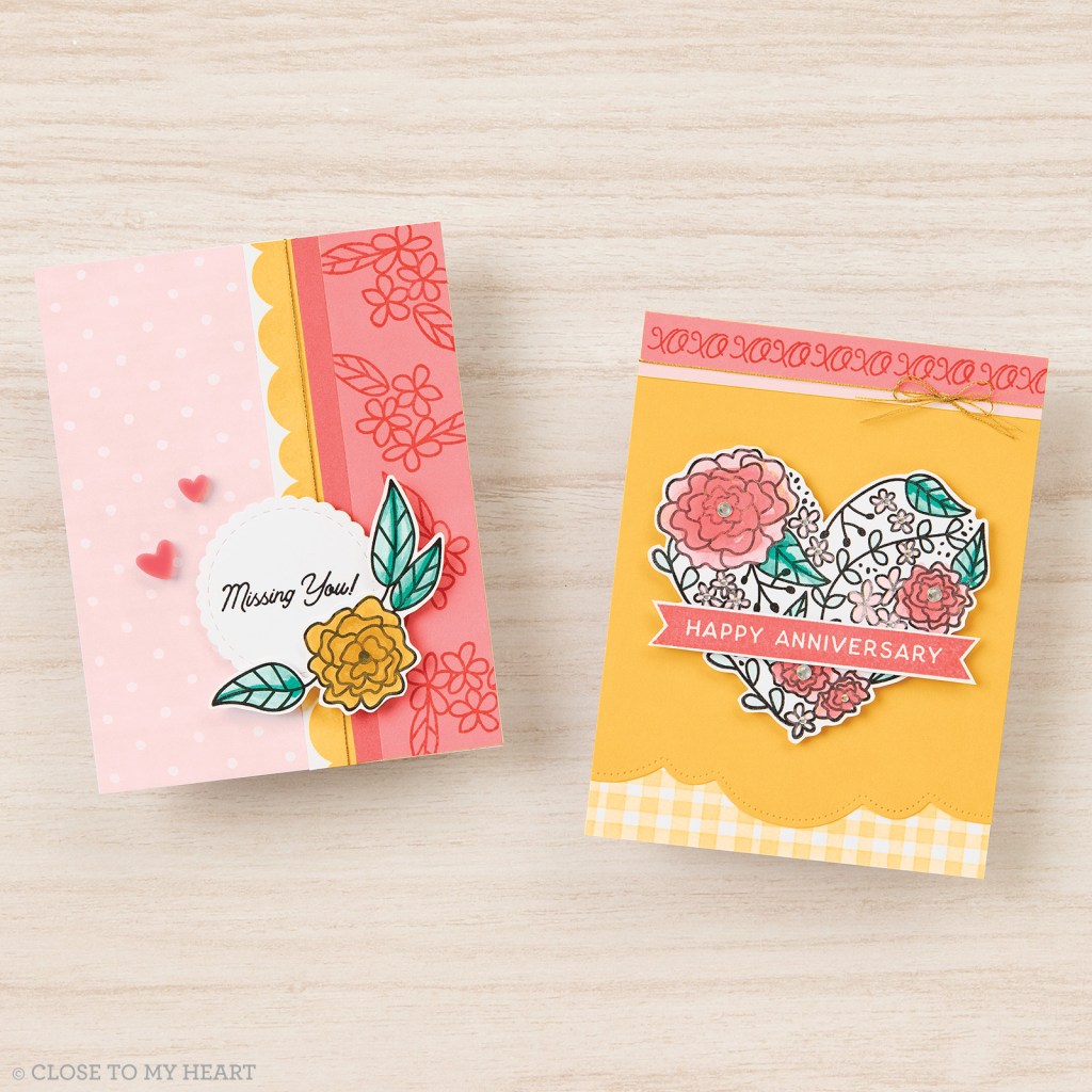 Today I would like to share with you a couple of cards which feature Close To My Heart’s January featured collection “Happiness Lives Here”.