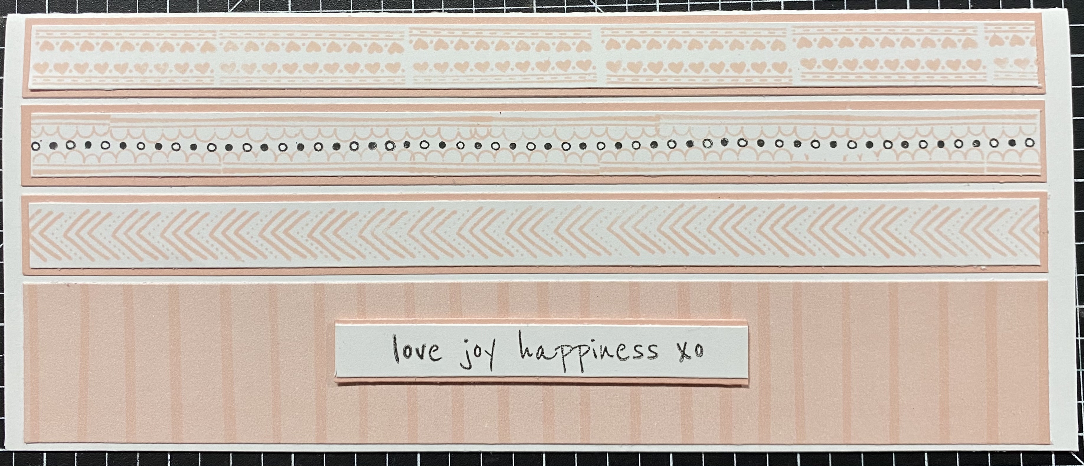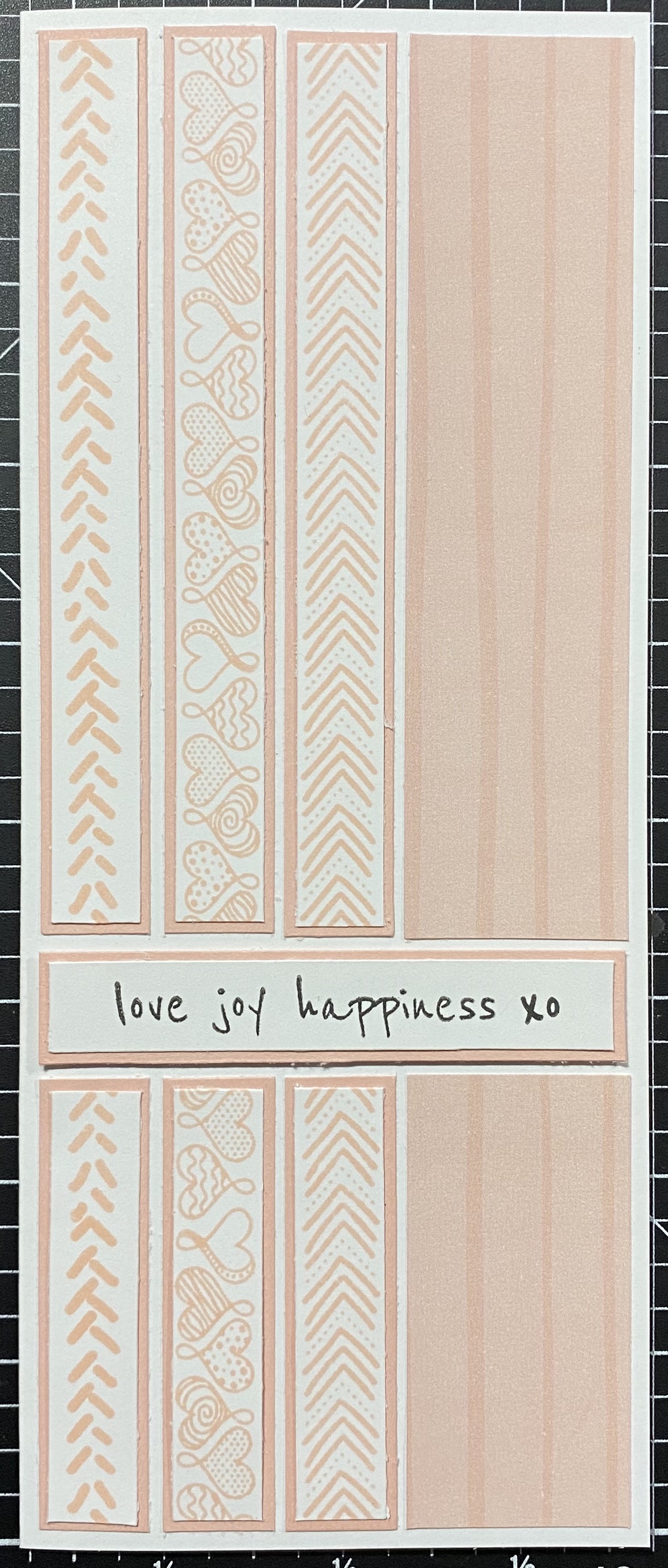 The Doodled Borders are also great to use to create patterns on cards too. The following card was designed by my friend Tammy on the new CTMH Slim Line Cards. Tammy created this horizontal version and I then created a vertical one. These cards use Peach and Black inks, peach cardstock and the peach patterned paper from the Jan/Feb Mix In Papers.